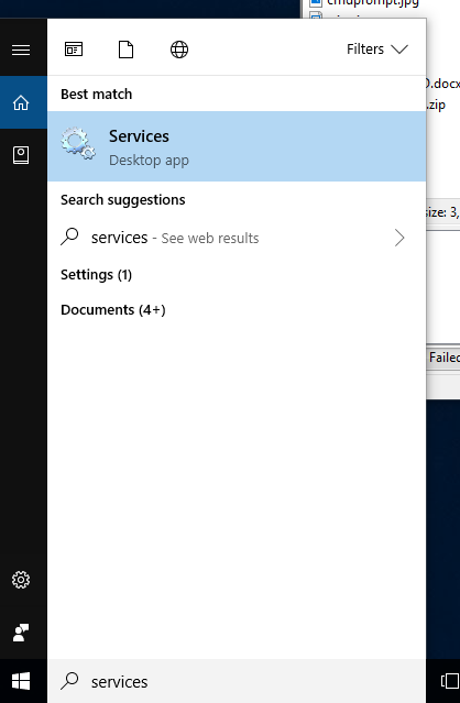 - Click Start, type services.msc, and press Enter to start the Services control panel.